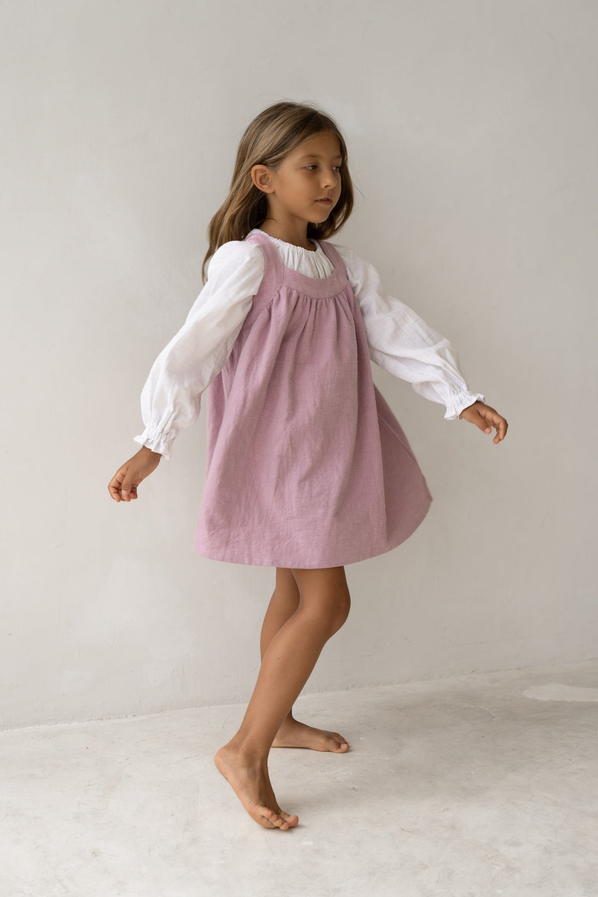 Handsmock blouse with crochet collar tapestry pink stripe print