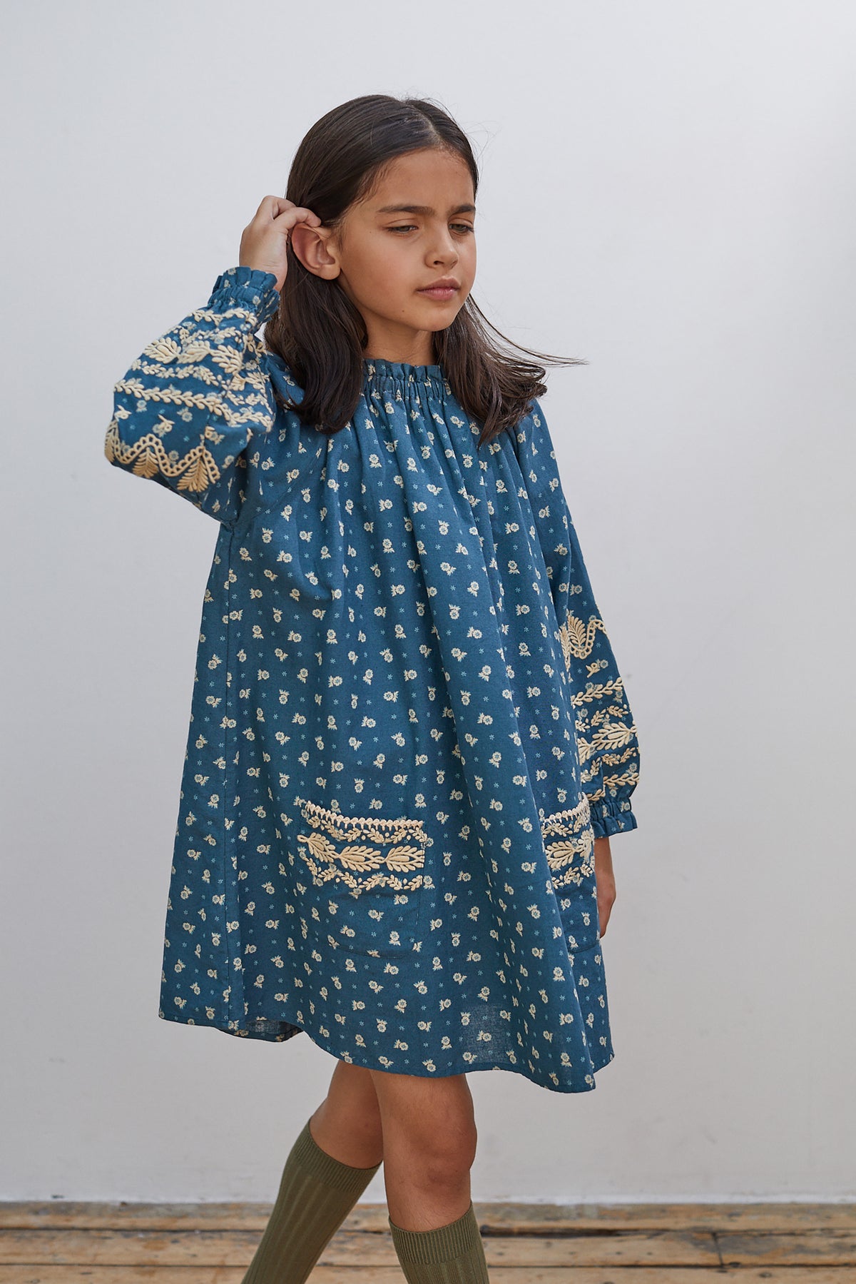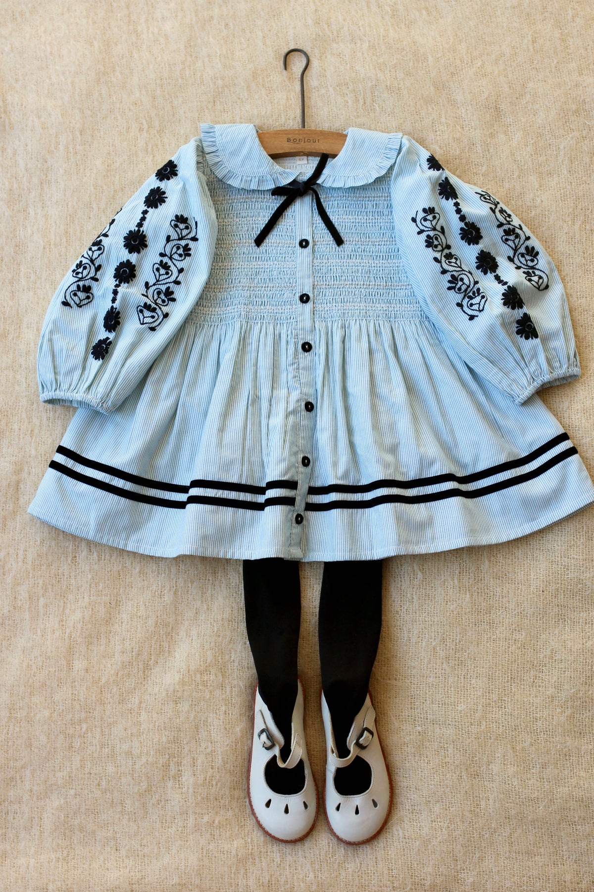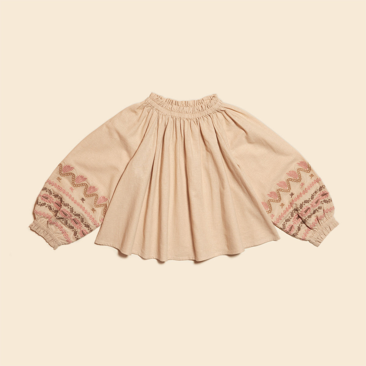 Handsmock blouse with crochet collar tapestry pink stripe print