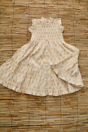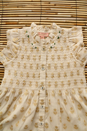 Ibiza Dress Flowers lurex ecru Chanderi